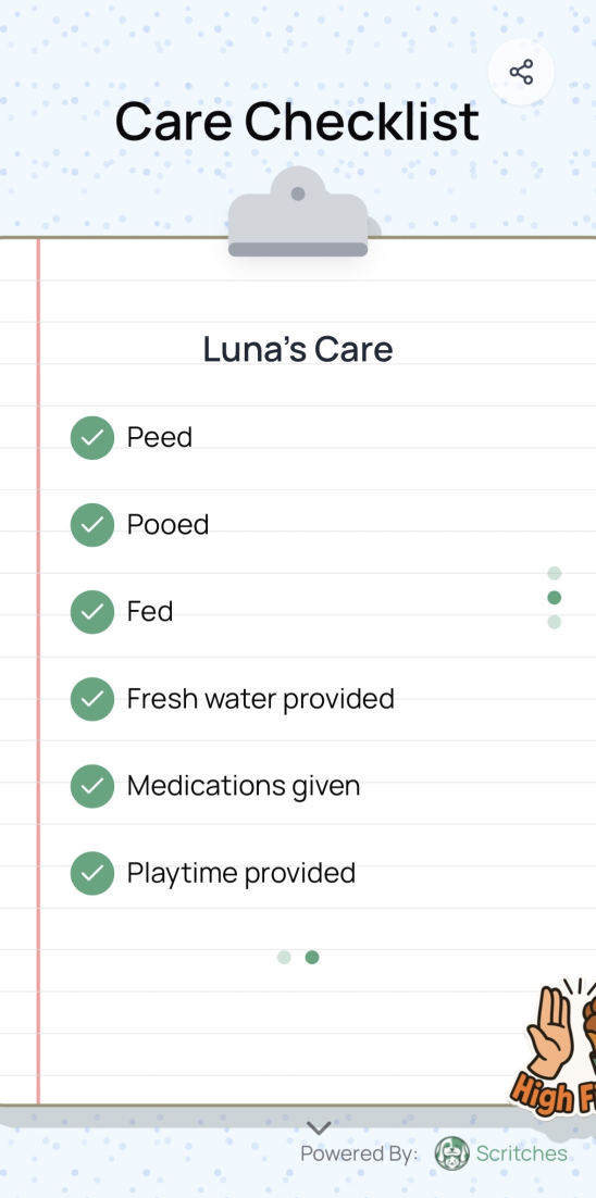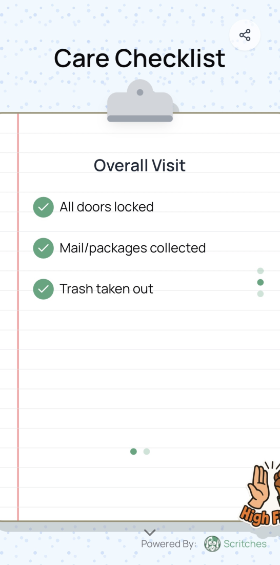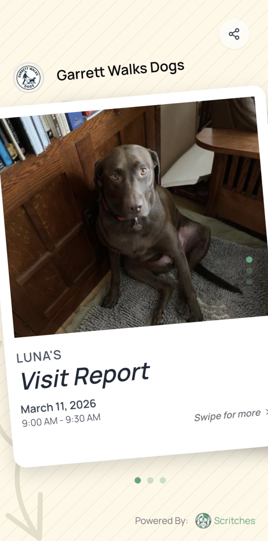 Here is Luna’s Visit Report! This includes photos of your pet and a checklist of everything we completed during our visit.